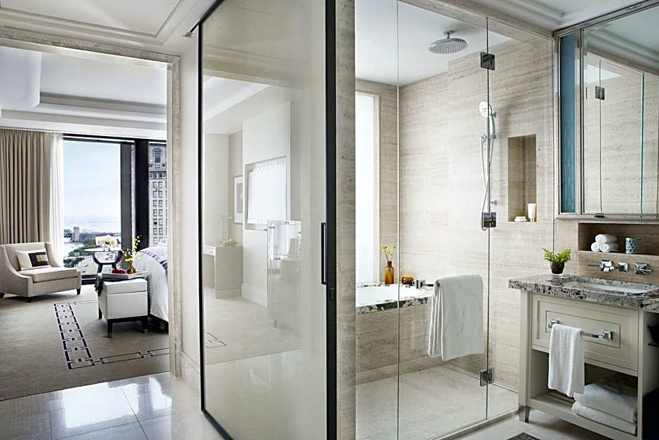 Located on the upper floors of the hotel, this one-bedroom suite is handicap-accessible and features a mix of classic style and contemporary furnishings, a view of the Chicago River and a separate seating area, allowing for private entertainment.